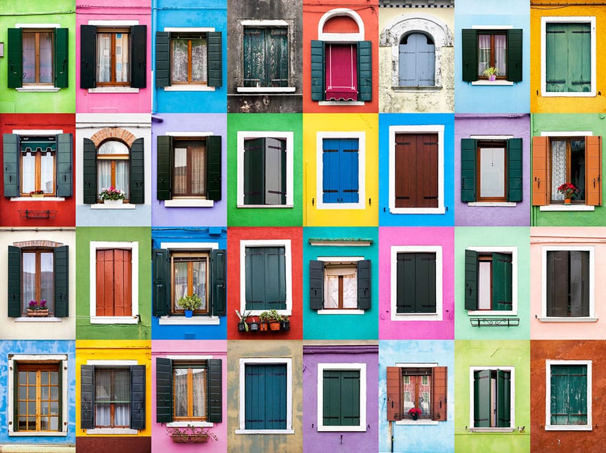 Bedanya dengan desain jendela di Venice, di Burano bentuknya mungkin lebih sederhana didominasi bentuk persegi panjang lazim jendela biasanya. Namun warna warni tembok di Burano jauh lebih indah dan bervariasi.