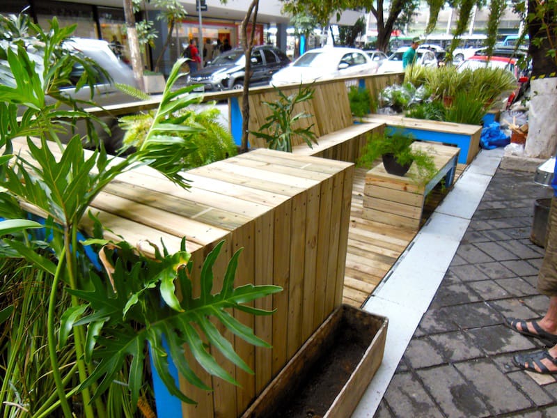 Jangan kira parklet hanya ada di Amerika Serikat saja, parklet indah yang satu ini ada di Sau Paulo, Brazil. Dengan konsep taman yang asri, parklet berbahan kayu ini dikelilingi oleh tanaman hijau yang menyejukkan suasana.