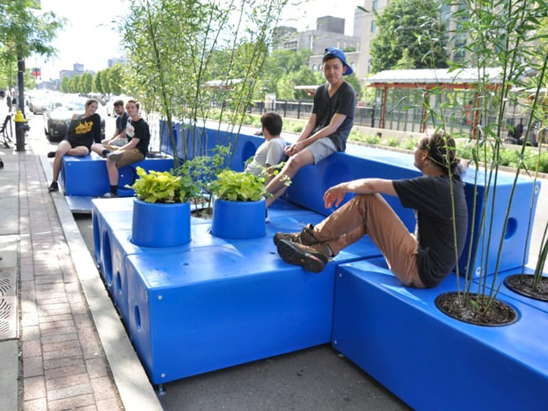 Ruang publik seperti semacam tembar duduk di trotoar seperti pada gambar di atas disebut dengan istilah parklet. Mengapa disebut parklet? Tentu saja karena awalnya parklet adalah lahan parkir pinggir jalan yang diubah fungsinya menjadi taman.