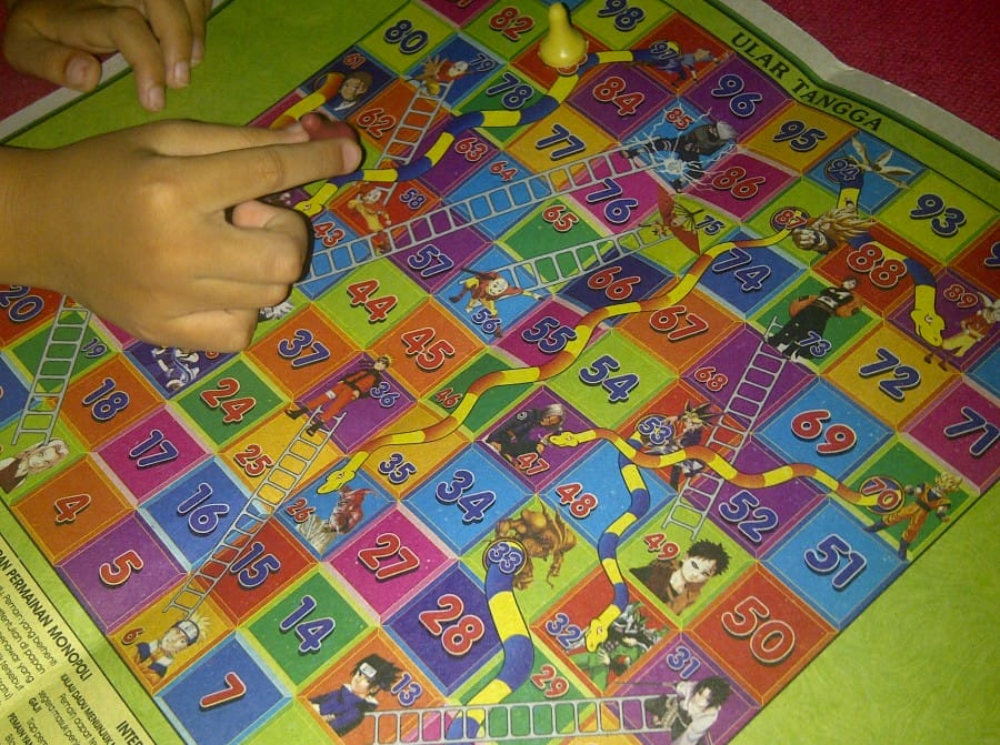 Biasanya ada 100 petak dalam satu papan. Pemain bisa langsung naik jika bertemu tangga. Namun pemain harus turun saat berhenti pada petak yang ada ekor ularnya.