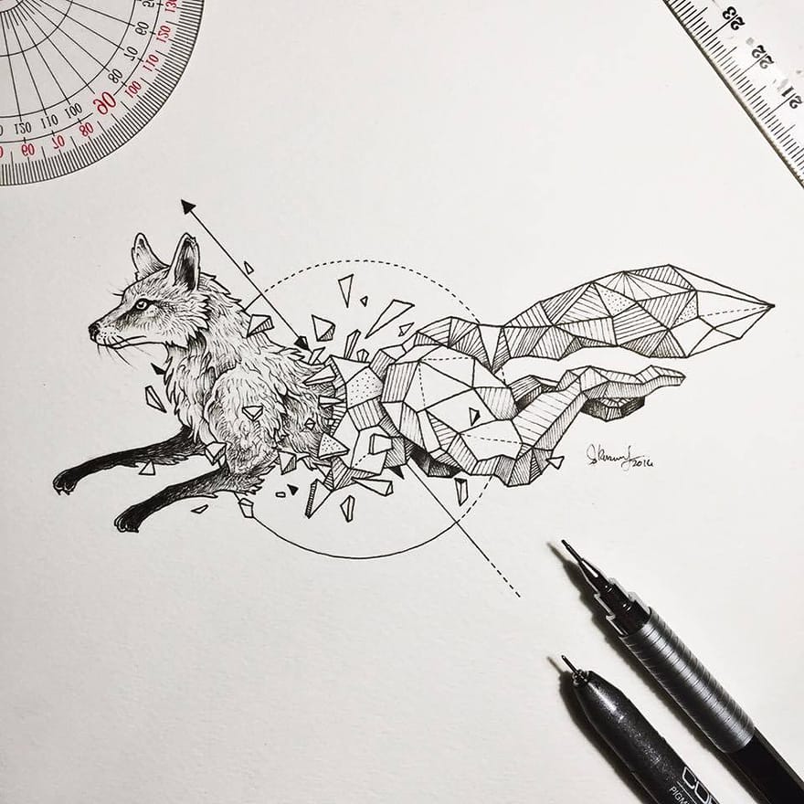 7 Karya Gambar Pensil Detil, Binatang Liar Dalam Belenggu Geometri