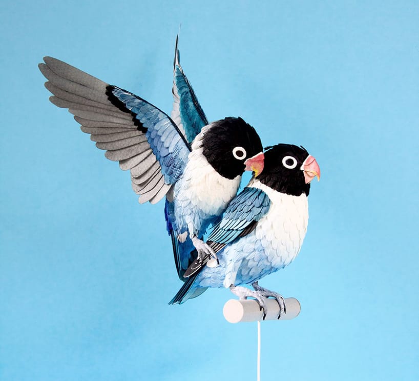 Karya yang satu ini dibuat oleh Diana pasa tahun 2015, ini adalah burung Lovebird. Di Indonesia tentu sangat banyak dipelihara dan lebih dikenal dengan istilah burung Parkit. Namun tentu kamu jarang melihat burung parkit berwarna biru bukan?