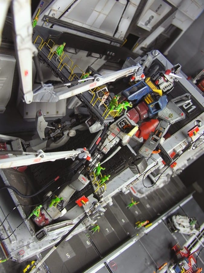 Pada diorama ini menggambarkan suasana ketika membuka palka kemudi dan proses perakitan dari robot ini. Detail warna yang sangat mengagumkan dan dilengkapi dengan staf teknisi yang sedang bekerja.