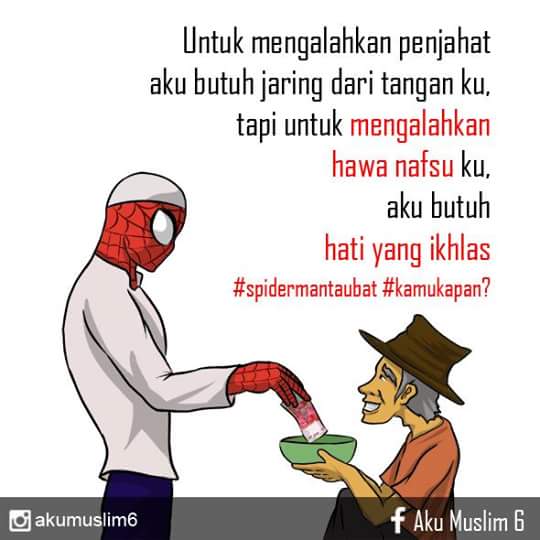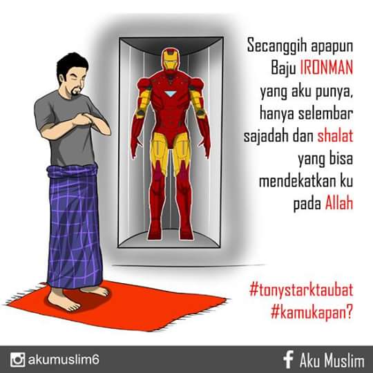 Seorang di facebook dengan akun ‘Aku Muslim 6’ mengunggah beberapa gambar ilustrasi tentang superhero yang bertaubat. Mau tahu bagaimana para superhero jika sedang bertaubat.