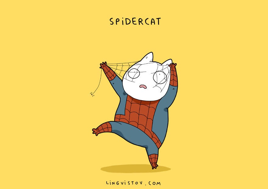 Nah, hal itulah yang ingin diceritakan Lingvistov pada kamu. Lewat ilustrasinya yang baru, Lingvistov membuat karya berjudul if cats were superheros. Jadi, dari kesembilan pahlawan kucing di bawah ini, yang mana favorit kamu?