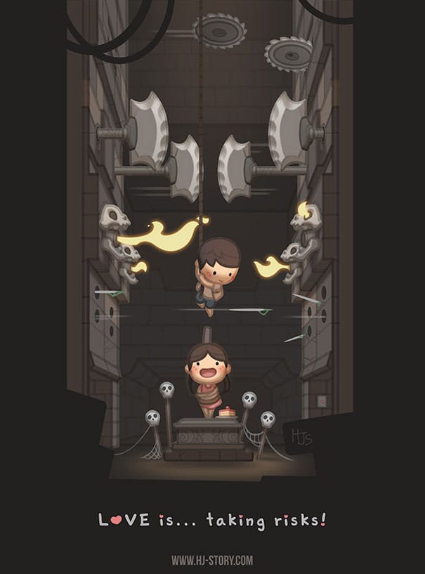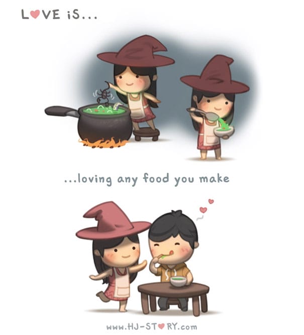 Ilustrasi cinta lucu berikutnya adalah buatan Hou selama sekitar 6 tahun lamanya. Dalam kehidupan rumah tangga, apapun dilakukan bersama bukan? Disitulah cinta kamu dan pasangan akan semakin dalam. Dan sedikit lucu tentunya.