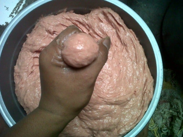 Saat daging sapi ini hendak digiling, jangan lupa dicampur dengan es batu. Fungsi dari es batu ini untuk menghambat suhu naik ketika daging digiling. Sebab kalau suhunya naik, gel pun akan terbentuk sebelum masuk tahap direbus. Jadi daging sapi “matang” lebih dulu sebelum waktunya.