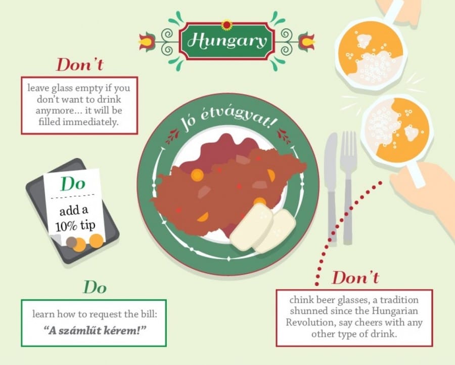Jika kamu tidak ingin minum lagi, habiskan minuman yang ada di gelas kamu. Jika tidak, gelas kamu akan segera diisi kembali oleh petugas. Selain itu, jika ingin meminta tagihan pembayaran, ucapkan “a számlát kérem!”.