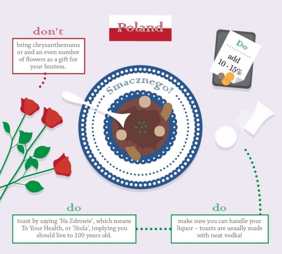 Nah, di Polandia barangkali kamu harus menyediakan uang lebih untuk memberikan tip yang cukup banyak hingga 15%. Jumlah tip ini memang lebih besar, namun memberikan tip sebanyak 10% harusnya tidak menjadi masalah.