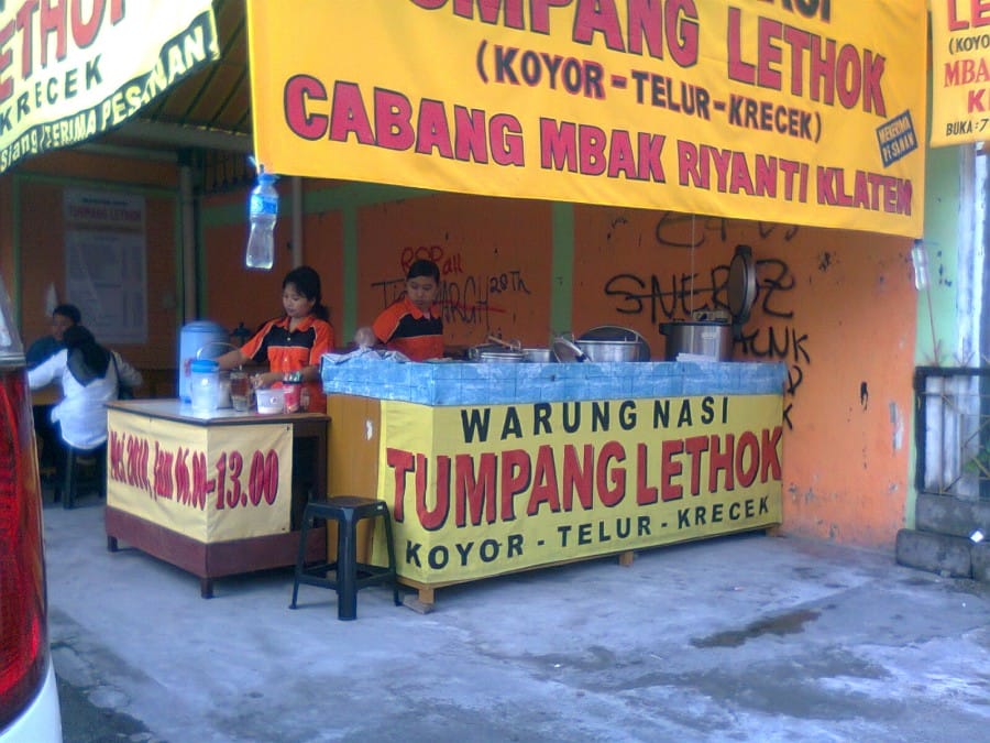 Di sepanjang jalan tersebut hingga perlimaan Bramen, kamu akan menemukan pedagang yang menjual makanan khas Klaten ini di pagi hari. Salah satu yang menyediakan nasi tumpang lethok ini adalah Warung Mbak Riyanti.