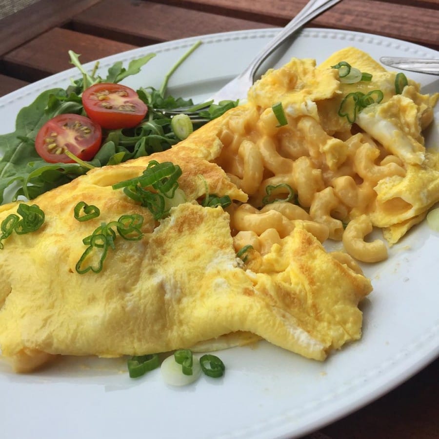 Panaskan margarin pada penggorengan. Tuang adonan telur dan masak sampai setengah matang. Pada bagian atas tuang makaroni yang sudah dimasak. Gulung perlahan omelet dan masak sampai matang. Setelah matang angkat dan tiriskan.