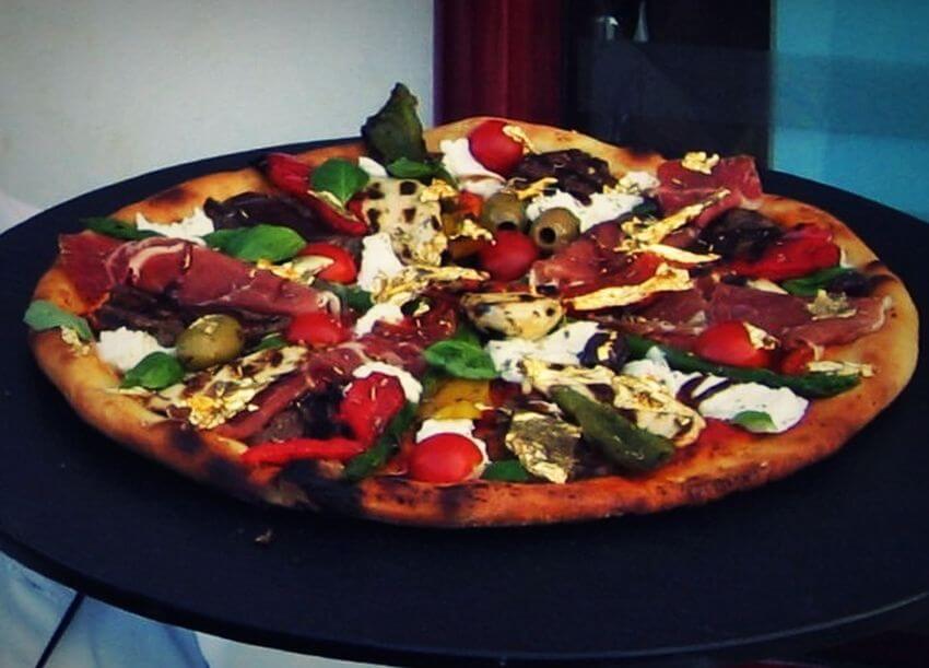 Karena pizza ini menggunakan bahan-bahan yang pada dasarnya memiliki harga yang sangat mahal, seperti lobster, kaviar, salmon asap, daging rusa, dan balsamic vinegar. Tak hanya itu saja, taburannya berasal dari emas 24 karat. Gila bener!