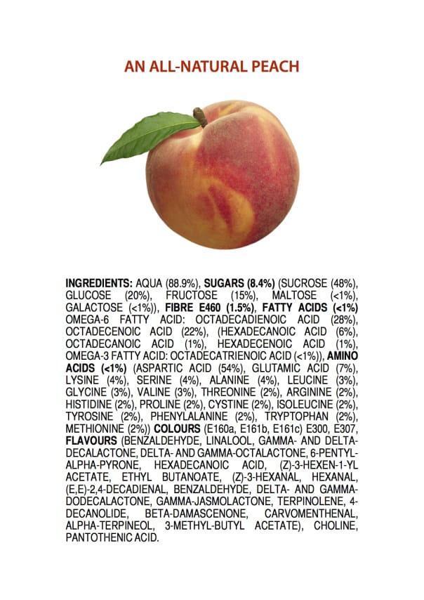 Dari kandungan gula sebanyak 8,4%, sebagian besar gula dalam buah persik juga merupakan gula sukrosa (48%). Selain itu, ternyata buah persik juga mengandung serat sebanyak 1,5%.