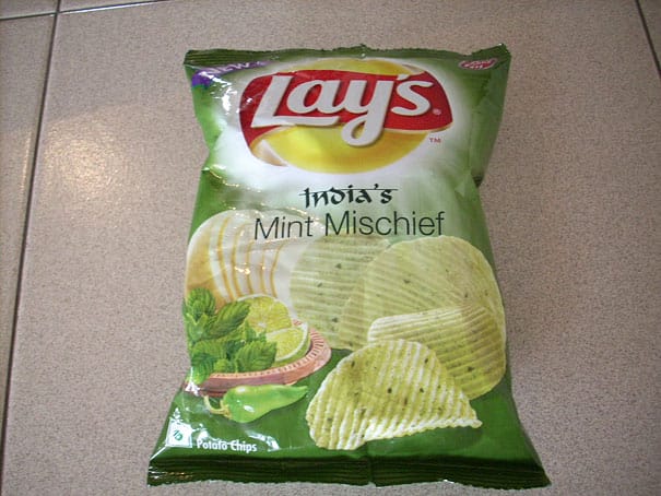 Kamu pernah mencoba permen dengan citarasa mint yang melegakan tenggorokan? Kalau pernah, coba bayangkan bagaimana rasanya potato chips dengan rasa mint. Di India ada snack kentang dengan rasa mint.