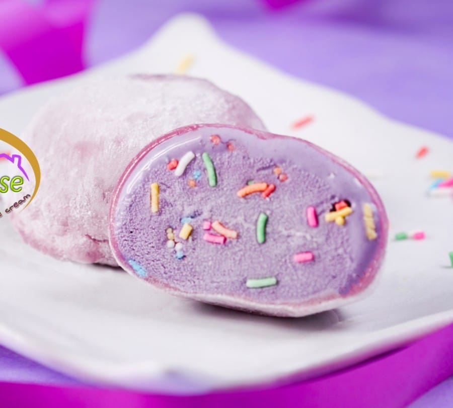 Langkah terakhir adalah membungkus bulatan es krim dengan kue moci. Potong-potongalah kue mochi menyesuaikan besarnya bulatan es krim.