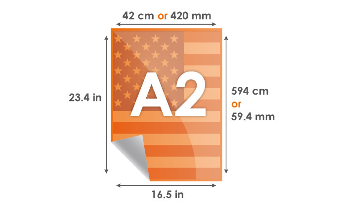Misalnya, kertas A2 memiliki ukuran 16,54 in x 23,99 in atau 420 mm x 594 mm . Kertas A2 berarti berukuran 1/4 dari ukuran kertas A0.