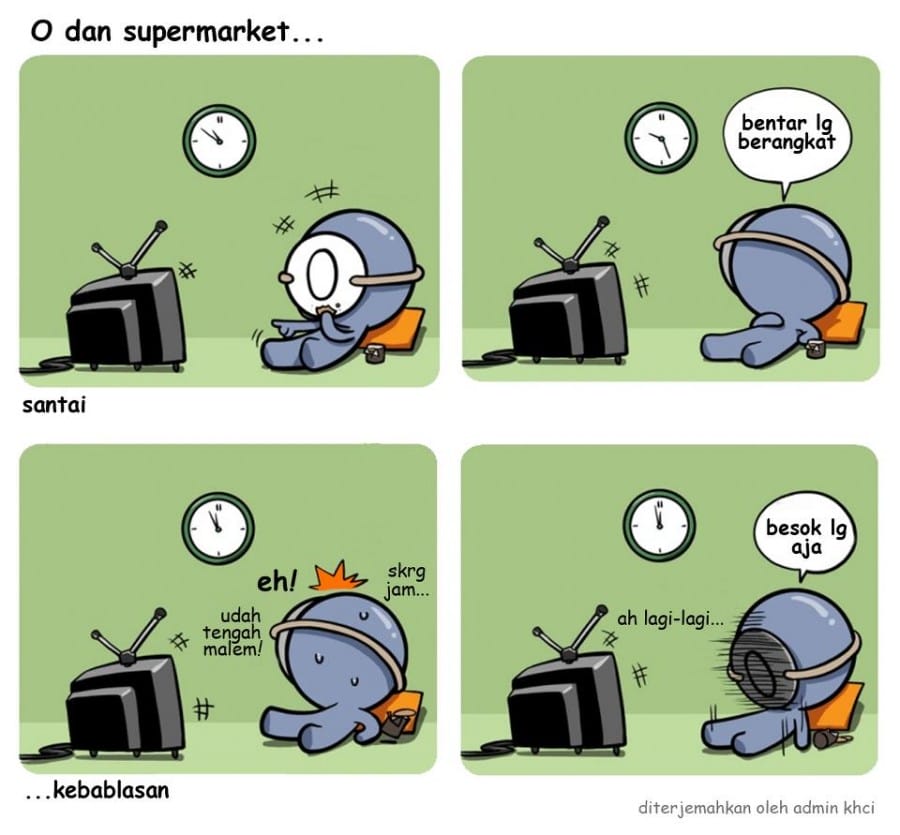 Misalnya, saat mereka ingin pergi ke supermarket jam 9 pagi namun ditunda karena ada tayangan televisi yang bagus. Memasuki jam 12 siang, mereka tidak jadi pergi lagi karena acara televisinya belum selesai, nanggung katanya.