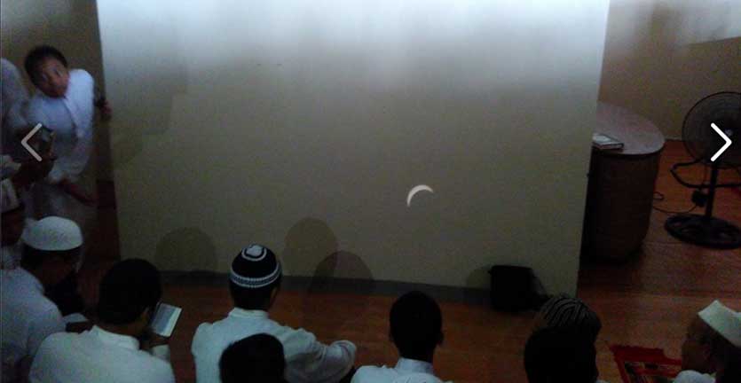 Masyarakat yang antusias melihat fenomena matahari tertutup bulan ini lalu berbondong-bondong mencari spot terbaik untuk melihat gerhana matahari. Tapi tentu orang tidak melihat langsung matahari yang begitu silau dan berbahaya bagi mata.
