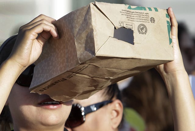 Gerhana matahari bisa dilihat dengan alat khusus yang dibuar menjadi kacamata. Namun, tidak semua orang bisa mendapatkan kacamata ini.