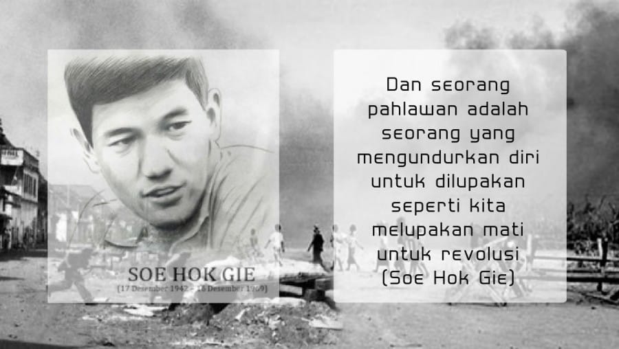 Pemuda Tionghoa ini meninggal diusia 26 tahun saat akan berulang tahun ke-27. Orang memanggilnya Gie. Gie adalah aktivis Indonesia yang pernah mengenyam pendidikan di Universitas Indonesia pada tahun 1962-1969.