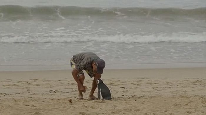 Seperti yang ditunjukkan oleh Joao Pereire de Souza, seorang kakek dari Brazil berusia 71 tahun yang pernah menyelamatkan seekor penguin di pantai Rio de Janairo.