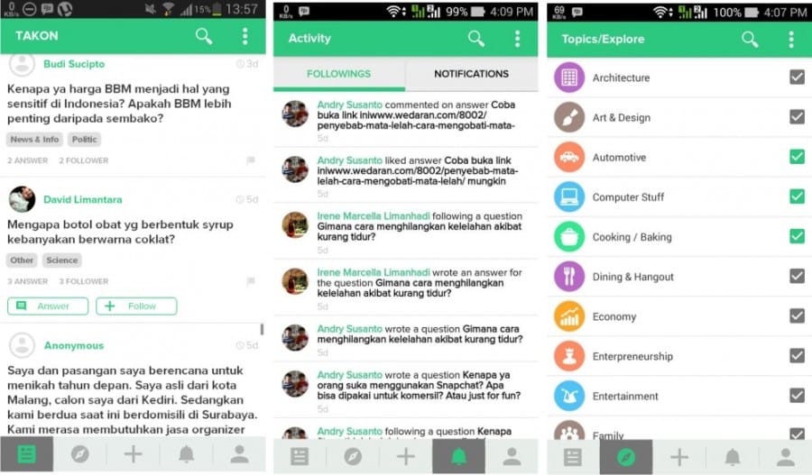Inilah aplikasi tanya jawab dengan ala Quora dengan tampilan Twitter. Aplikasi ini dikembangkan oleh Techrun Innovation Indonesia, startup bisnis asal Malang. Kamu bisa menanyakan banyak hal sederhana yang akan direspon oleh banyak orang.