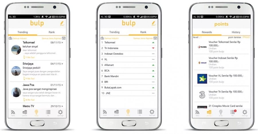 Bahkan kamu bisa menyampaikan saran ke berbagai toko online yang ada di Indonesia. Terdapat catatan rank juga yang menampilkan ranking berbagai perusahaan besar berdasarkan testimoni pelanggan lewat Bulp ini.