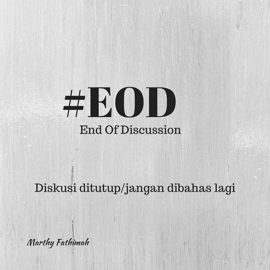 Agar berjalan lancar, diskusi dunia maya biasanya juga dipimpin oleh seorang moderator. Pada akhir diskusi tak jarang digunakan istilah EOD. Maksud istilah ini yaitu end of discussion atau diskusi di tutup.