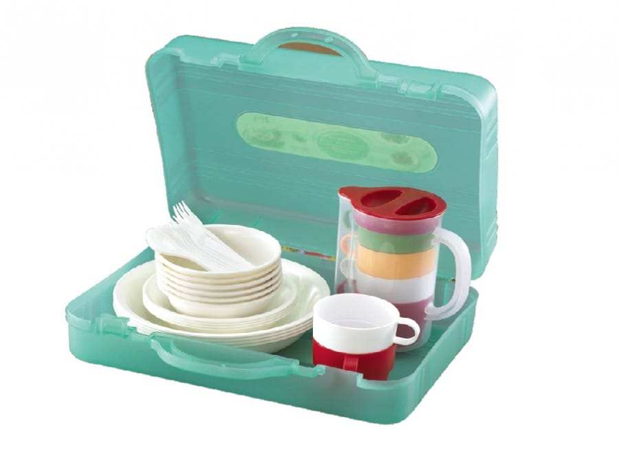 Untuk peralatan makanan butuh kotak dan keranjang makanan besar, juga cooler box untuk wadah minuman dingin. Peralatan wajib tentunya piring, gelas, dan sendok (paling aman bahan plastik).