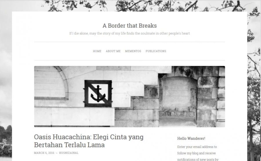 Blog ini cukup terkenal serta masuk ke dalam 17 travel blogger terseru di Indonesia. Penulisnya sendiri mengaku lebih suka traveling sendirian serta tidak pernah membekali dirinya dengan itinerary. Hingga pada akhirnya dia menemukan sesuatu yang unik dan menarik untuk diabadikan melalui jepretan kameranya.