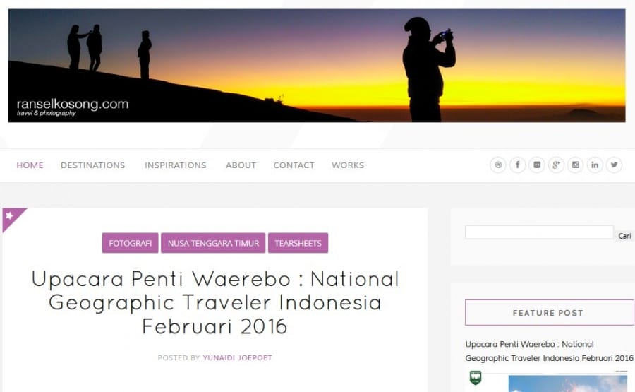 Blog ini adalah milik seseorang yang bernama Yunaidi Joepoet. Dia adalah seorang fotgrafer dan penulis yang memenangi banyak penghargaan. Kini dia bekerja sebagai seorang staf fotografer di majalah National Geographic Indonesia serta National Geographic Traveler Indonesia