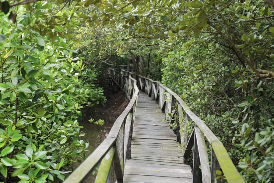 Kamu juga bisa melihat berbagai binatang yang hidup di Hutan Bakau ini. Selain itu, kicauan burung pun akan kamu perdengarkan saat berada di hutan ini. Berbagai flora juga bisa kamu temukan di Hutan Bakau ini.